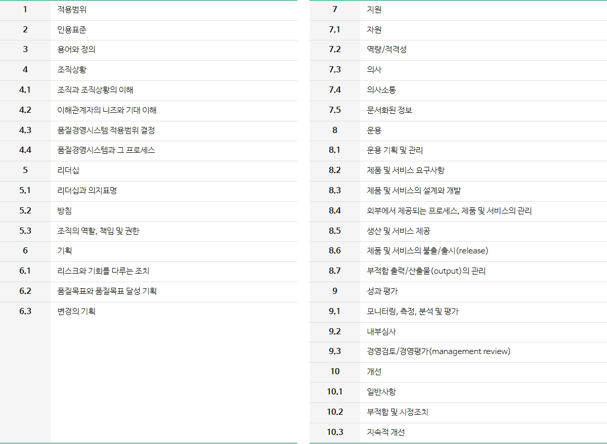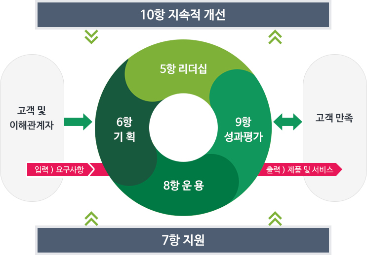 ㆍ조직 성과의 지속적인 개선 및 성과 측정의 도구로 활용 ㆍ고객의 요구에 부응하는 최적의 품질시스템 구축 ㆍ조직의 품질 경영 의지 입증 ㆍ품질경영 및 품질보증 시스템 정착 ㆍ품질경영시스템(QMS)의 국제화 추세에 능동적으로 대응 |
